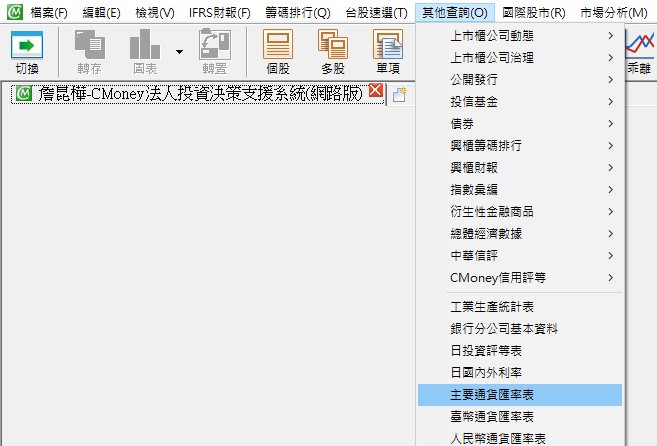 點上方文字工具列 - 其他查詢 - 主要通貨匯率表
