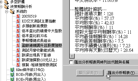 進行決策報酬分析計算完成後,若按匯出分析報表,新增每月報酬分析、個股操作明細、個股報酬分析等三項報表。