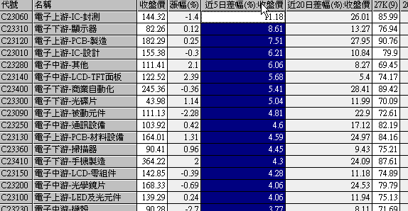 2.新增含括所有個股的45項電子次產業指數(籌碼排行=>日指數彙編表)