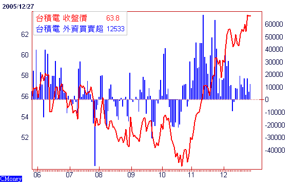 範例1:例如您可並列收盤價與外資買賣超,並將買賣超
