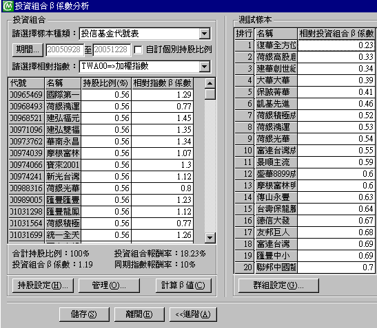 新增投資組合B係數,增加可訂定股票以外的類別。。 |